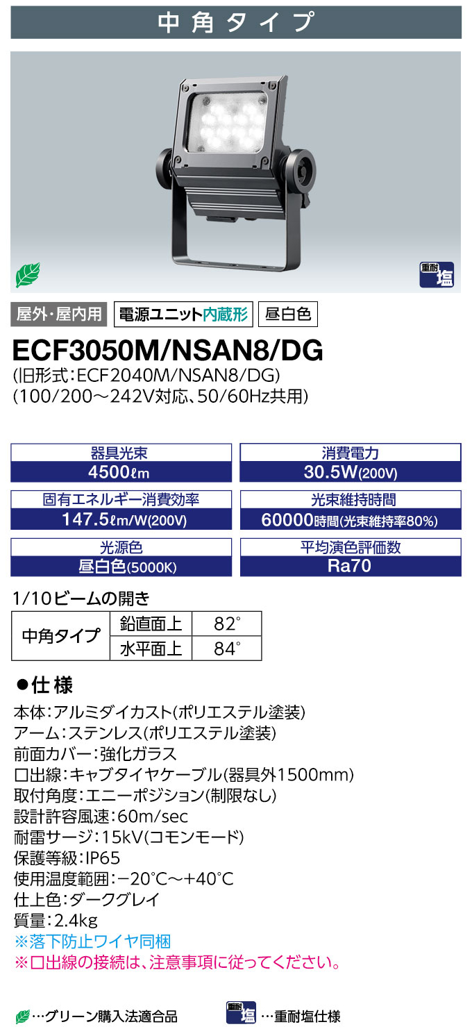 ECF3050M/NSAN8/DG + FA160/DG || <Ãæ·¿´ÇÈÄÍÑLEDÅê¸÷´ï¥¢¡¼¥à¥»¥Ã¥È>´äºêÅŵ¤¡Ú¥ì¥Ç¥£¥ª¥Ã¥¯¥Õ¥é¥Ã¥É¥Í¥ª[30¥¯¥é¥¹]Ãæ³Ñ¥¿¥¤¥× ÃëÇò¿§ 4500lm ÅŸ»Æâ¢ IP65¡Û+¡Ú¥¨¥ë¥Ü¡¼¥¢¡¼¥à:600mm¥¿¥¤¥×(¥ï¥¤¥ä¼èÉÕ¶â¶ñÉÕ)¡Û²°Æâ³°·óÍÑ ¥À¡¼¥¯¥°¥ì¥¤ (µì:ECF2040M/NSAN8/DG)[br]¤Ë¤Ä¤¤¤Æ¤Ä¤Ö¤ä¤¯
