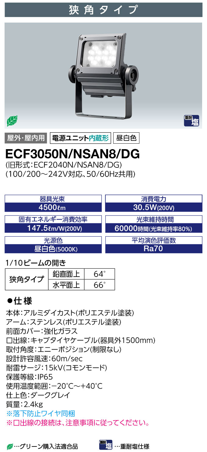 ECF3050N/NSAN8/DG + FA21/DG1 || <Ãæ·¿´ÇÈÄÍÑLEDÅê¸÷´ï¥¢¡¼¥à¥»¥Ã¥È>´äºêÅŵ¤¡Ú¥ì¥Ç¥£¥ª¥Ã¥¯¥Õ¥é¥Ã¥É¥Í¥ª[30¥¯¥é¥¹]¶¹³Ñ¥¿¥¤¥× ÃëÇò¿§ 4500lm ÅŸ»Æâ¢ IP65¡Û+¡Ú¥¢¡¼¥à:400mm¥¿¥¤¥×¡Û²°Æâ³°·óÍÑ ¥À¡¼¥¯¥°¥ì¥¤ (µì:ECF2040N/NSAN8/DG)[br]¤Ë¤Ä¤¤¤Æ¤Ä¤Ö¤ä¤¯