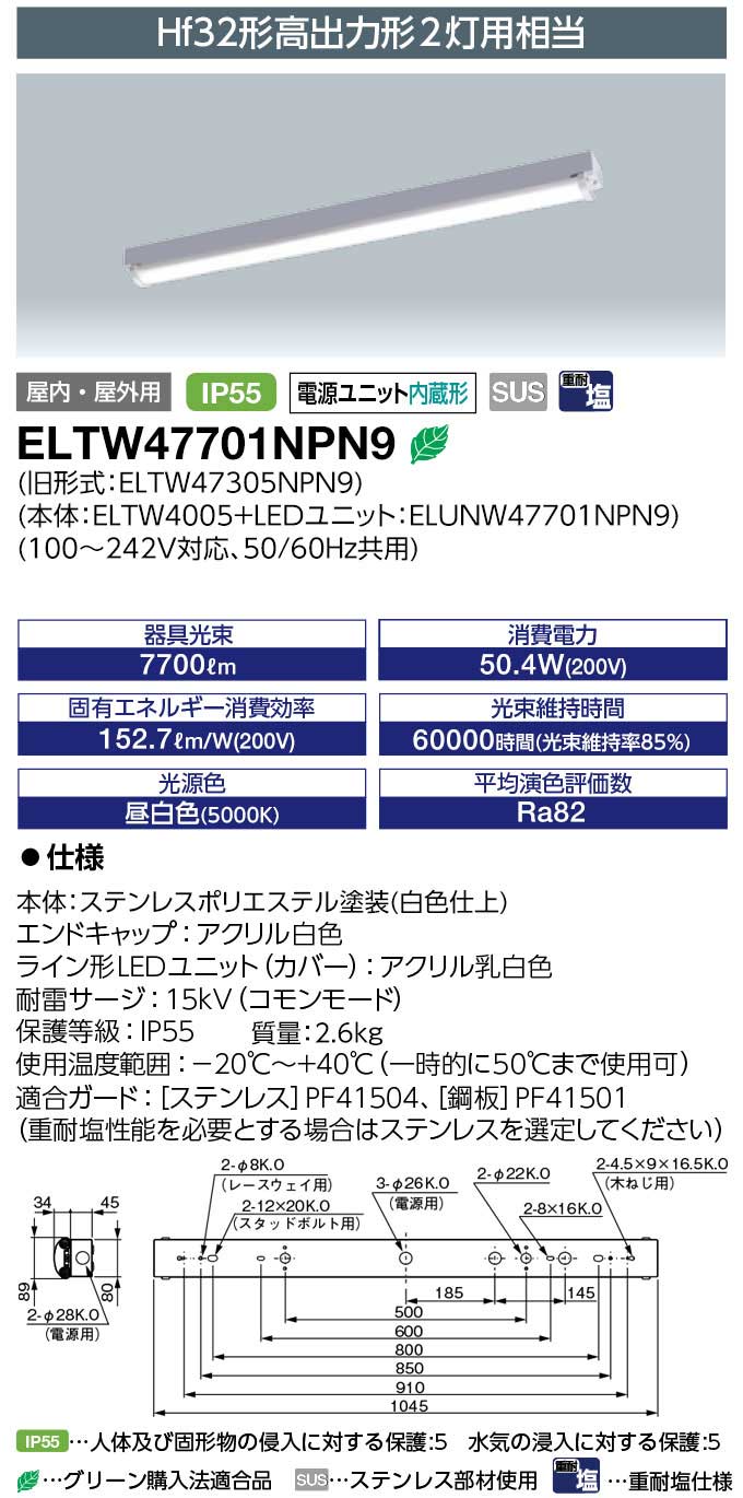 ELTW47701NPN9 || Ëɿ巿LED¥Ù¡¼¥¹¥é¥¤¥È ´äºêÅŵ¤ LEDioc MULTILINE¡ã¥È¥é¥Õ·Á1000mm¥¿¥¤¥×¡ä(¥¹¥Æ¥ó¥ì¥¹) ÅŸ»Æâ¢ ²°Æâ³°·óÍÑ IP55 ½ÅÂѱö Hf32W·Á¹â½ÐÎÏ·Á2ÅôÍÑÁêÅö ÃëÇò¿§(5000K) 7700lm Ra82 AC100¡Á242V ¾ÃÈñÅÅÎÏ(50.4W/200V»þ) ¼÷Ì¿(Ìó60000h)¡ÚÂå°úÉԲġÛ[br]