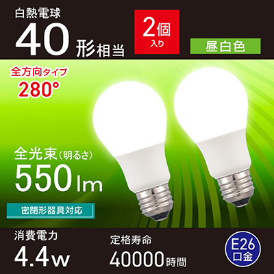 LDA4N-G AG59 2P || ¡Ú2¸ÄÆþ¡Û°ìÈÌÅŵå·ÁLEDÅŵå OHM(¥ª¡¼¥àÅŵ¡¡Ë ²°ÆâÍÑ/Ì©ÊÄ·Á´ï¶ñÂбþ/Ä´¸÷ÉÔ²Ä Á´Êý¸þÇÛ¸÷280¡ë40W·ÁÁêÅö¡¡ÃëÇò¿§¡ÊRa83¡Ë¡¡550lm¡¡¸ý¶â¡§E26¡¡Á´Ä¹108mm¡¢ºÇÂç·Â55mm¡¡¾ÃÈñÅÅÎÏ4.4W¡¡AC100V¡¡¼÷Ì¿40000h¡¡5ǯÊÝ¾Ú ¾¦ÉÊÈÖ¹æ(06-5464) [ohm]¡¡40W·ÁÁêÅö ÃëÇò¿§ ¸ý¶âE26