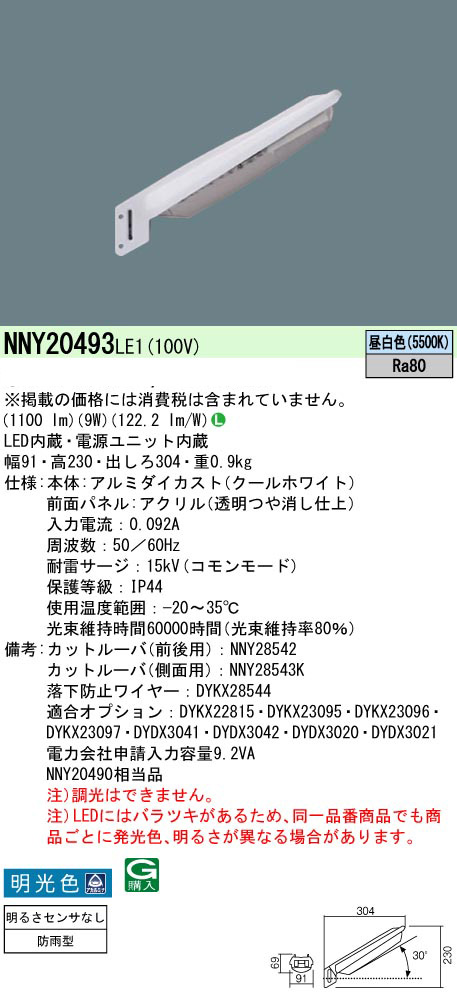 NNY20493LE1 || LEDËÉÈÈÅô Panasonic ¡ÚÃó¼Ö¾ìŽ¥¸òº¹ÅÀÍÑ¡ÛÅÅÎÏÃì¼èÉÕ·¿ [ÌÀ¤ë¤µ¥»¥ó¥µ¤Ê¤·] ·Ö¸÷ÅôFHT42·ÁÁêÅö ¥¢¥ë¥ß¥À¥¤¥«¥¹¥È IP44 [ÌÀ¸÷¿§(¥¢¥«¥ë¥ß¥Ê)] ÃëÇò¿§(5500K) 1100lm Ra80 AreaLux AC100V ¾ÃÈñÅÅÎÏ(9.0W) ¼÷Ì¿(60000h) [mw]¡¡Ãó¼Ö¾ìŽ¥¸òº¹ÅÀ ÌÀ¸÷¿§ ADC ÌÀ¤ë¤µ¥»¥ó¥µ¤Ê¤·
