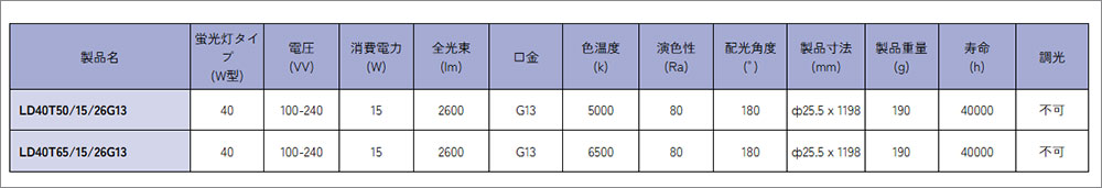 LD40T50/15/26G13 || ľ´ÉLED¥é¥ó¥×¡Ú10ËÜñ°ÌÈÎÇä¡Û ALEG ¡ÚÅŸ»ÆâÂ¢Ž¥ÊÒ¦µëÅÅŽ¥Ä¾·ëÀìÍÑŽ¥¹©»öɬ¿Ü¡Û²°ÆâÍÑ 40W·Á £Èf32·ÁÄê³Ê½ÐÎÏ·Á1ÅôÁêÅö ÃëÇò¿§(5000K/2600lm/Ra80) ´É·Â(25.5mm)Á´Ä¹(1198mm) G13¸ý¶â ÇÛ¸÷³Ñ:180¡ë Àß·×¼÷Ì¿(40000h) Ä´¸÷ÉÔ²Ä ¡ÚÂå°úÉÔ²Ä¡Û [br]