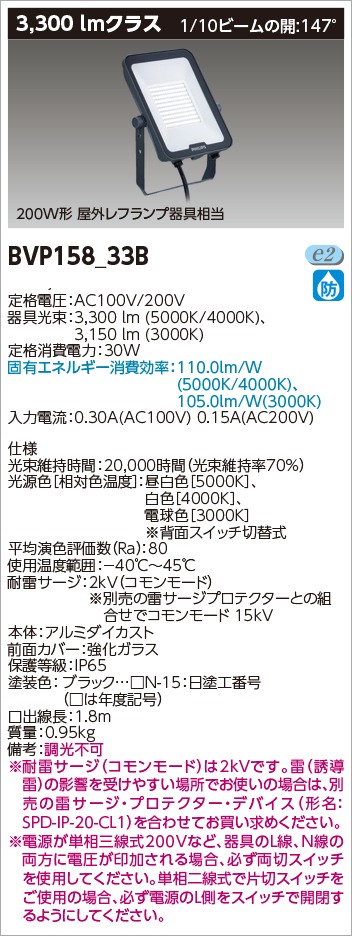 BVP158_33CFV(K) || LEDÅê¸÷´ï¥Ð¥¤¥¹¥»¥Ã¥È Åì¼Ç LED¥Õ¥é¥Ã¥É¥é¥¤¥È 158¥·¥ê¡¼¥º(¸÷¸»¿§3¿§ÅëºÜ¥¿¥¤¥×)¡Ú3300lm¥¯¥é¥¹ 200W·Á²°³°¥ì¥Õ¥é¥ó¥×´ï¶ñÁêÅö¡Û+¡Ú¥Ð¥¤¥¹¡Û+¡Ú¥¢¥¿¥Ã¥Á¥á¥ó¥È(VL)¡Û ¥Ö¥é¥Ã¥¯ [kj]